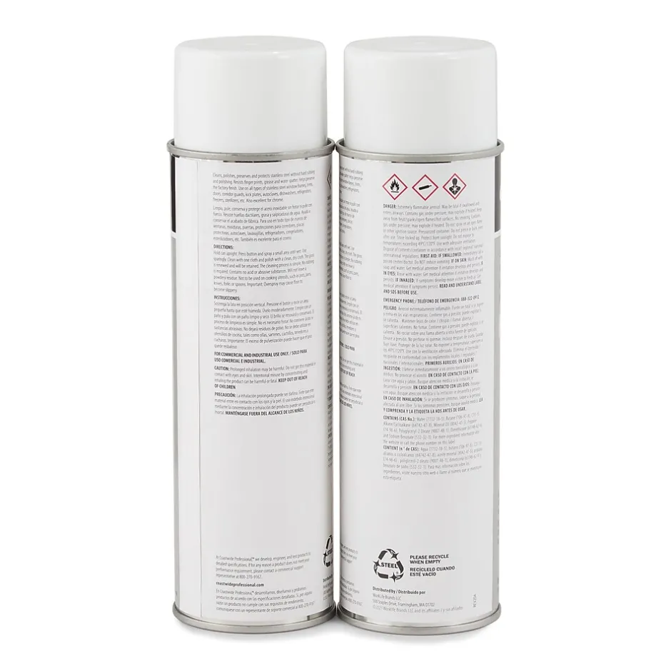 Stock up on office cleaning supplies with this stainless steel cleaner and maintainer in a handheld can. The water-based VOC-compliant formulation helps you restore the shine on stainless steel handles, bars, and various other surfaces. Featuring a color-coded label system, this canned Coastwide Professional handheld stainless steel cleaner and maintainer lets your cleaning staff easily identify the product in the supply cabinet.
