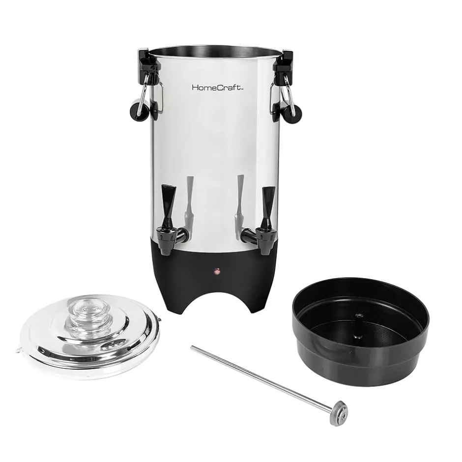 Perfect when hosting large gatherings or for use in meeting rooms, lounges and cafes, this polished stainless steel coffee urn efficiently brews up to 45 cups at a time of coffee, tea, cider, hot chocolate and more. No more waiting – the double spigot, two-way dripless faucet allows for more than one cup to be filled at a time! When done brewing, the keep warm function will keep the brew hot for hours and ready for guests.