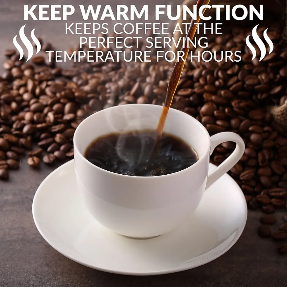 - KEEP WARM FUNCTION: Automatically holds coffee at the perfect serving temperature for hours