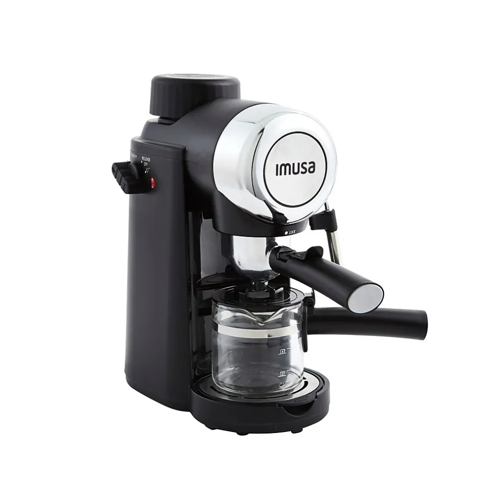 The IMUSA Espresso/Capuccino Maker brews up to 4 servings of aromatic, fresh espresso. Feel the coffeehouse experience with the variable steam control that allows you to froth milk and create delicious cappuccinos, macchiatos and lattes in the comfort of your own home. The espresso and cappuccino maker features a removable drip tray for easy clean up, and a temperature gauge for measuring the hot brewed coffee.