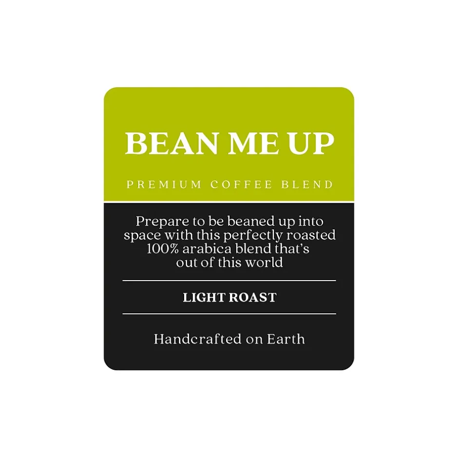 | Coffee Type Items of a particular grouping, as merchandised and labeled by a manufacturer | Bean Me Up |