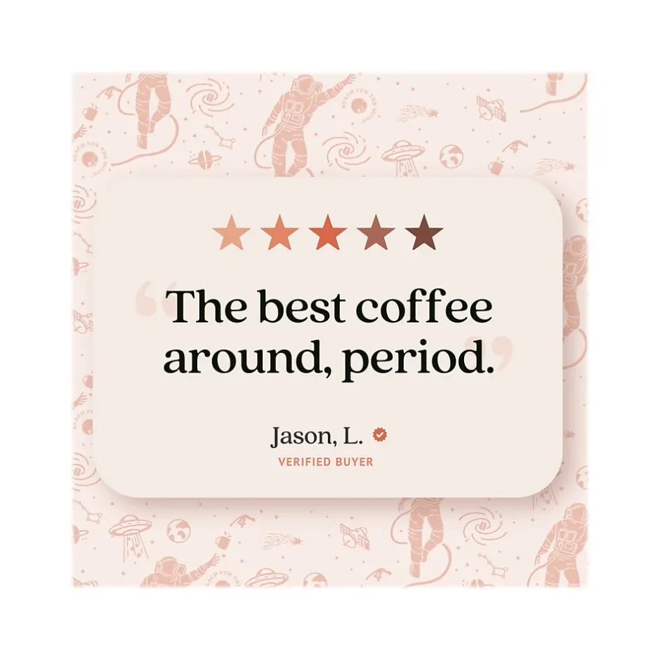 This Copper Moon Coffee Blast Off premium coffee blend maximizes the caffeine while not compromising the flavor. The “Strong Roast” provides the maximum amount of caffeine (over 1.5x more caffeine than other coffee) while creating a smooth yet intensely strong coffee that gets you ready for “blast off” after one sip.