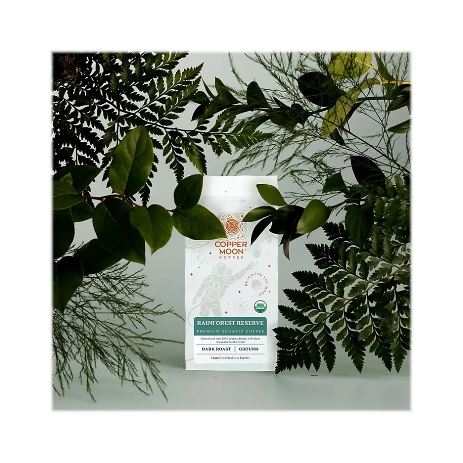The Copper Moon Coffee Rainforest Reserve Organic Coffee is a smooth yet bold blend of USDA Organic certified coffee, as luscious and complex as its biodiverse South American namesake. Hand-selected from amongst the best organic beans, Copper Moon Coffee carefully roasts each one to its peak flavor profile to offer you a smooth yet bold brew with hints of caramel in the finish.