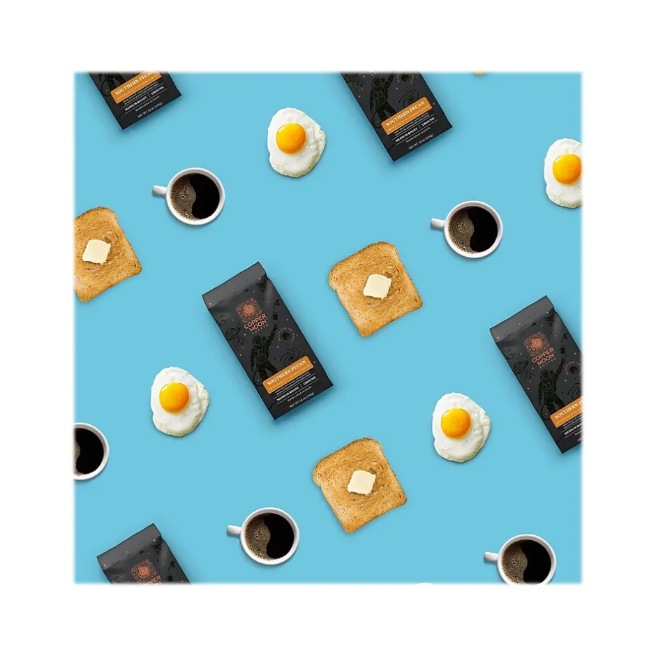 The Copper Moon Coffee Southern Pecan artificially flavored coffee is a classic blend with flavor characteristics of creamy caramel and nutty pecans reminiscent of homemade pie.