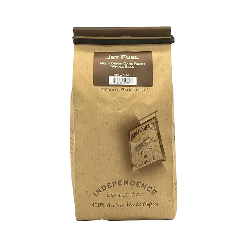 Indulge in the Independence Coffee Co. 24 oz. custom-ground Jet Fuel (multi-origin dark roast) coffee, a bold and enticing blend designed to captivate coffee aficionados. Expertly crafted by a woman-owned company, this coffee delivers a profound, dark roast that’s as intriguing as a moonless night, while its velvety smoothness adds an exquisite touch to every sip. The exotic notes in this brew take your taste buds on an adventure, making your mornings or late nights truly exceptional. As they say at the roastery, “Don’t be afraid of the dark!” Dark as midnight: this coffee boasts a deep, dark roast that’ll satisfy even the most die-hard coffee lovers. Silky-smooth: enjoy a velvety-smooth sip with every cup, making your mornings (or late nights) a true delight. Empowering excellence: support a woman-owned company dedicated to delivering outstanding, artisanal coffee experiences.