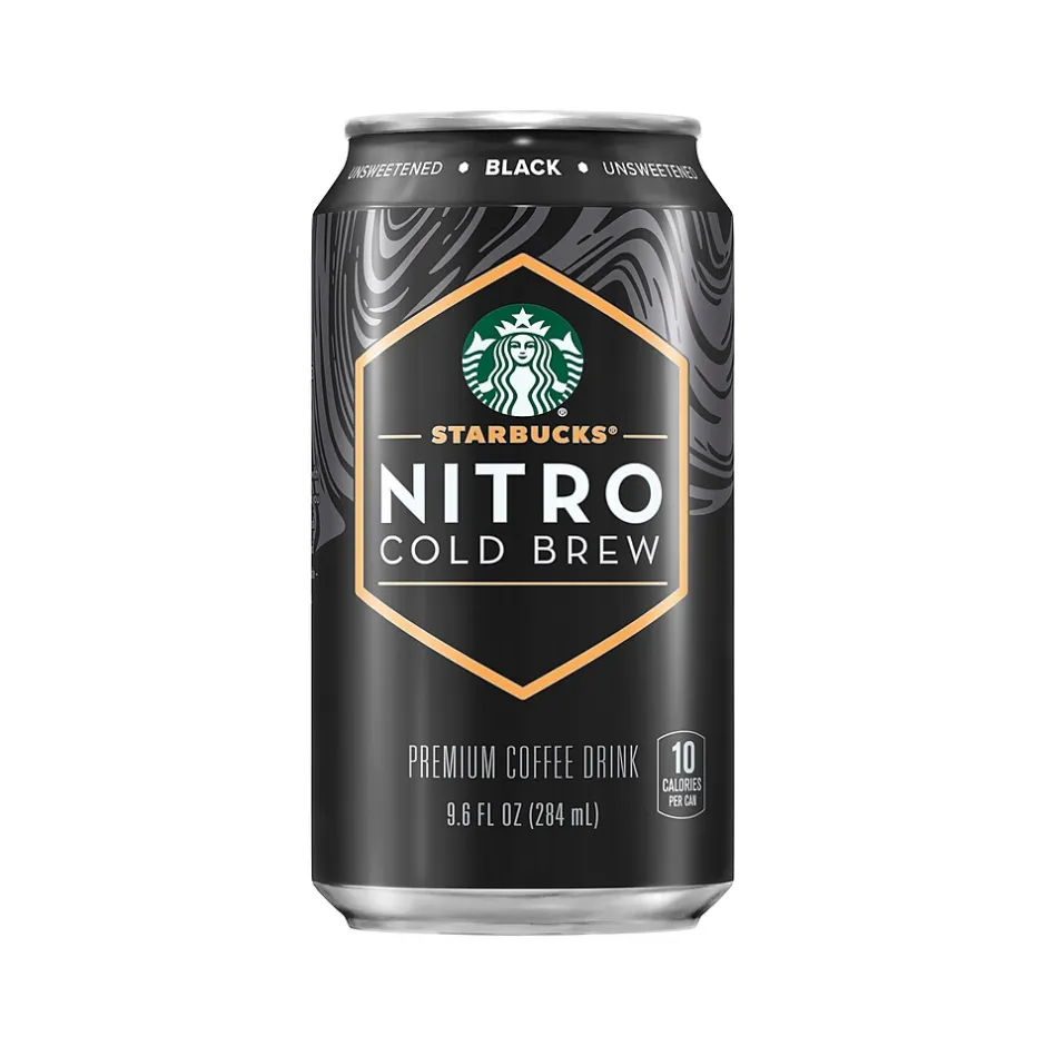 Starbucks Nitro cold brew is infused with nitrogen the minute you open it, creating a rush of creamy texture and velvety smooth taste. Starbucks started with a premium blend of beans specially selected to brew without heat.