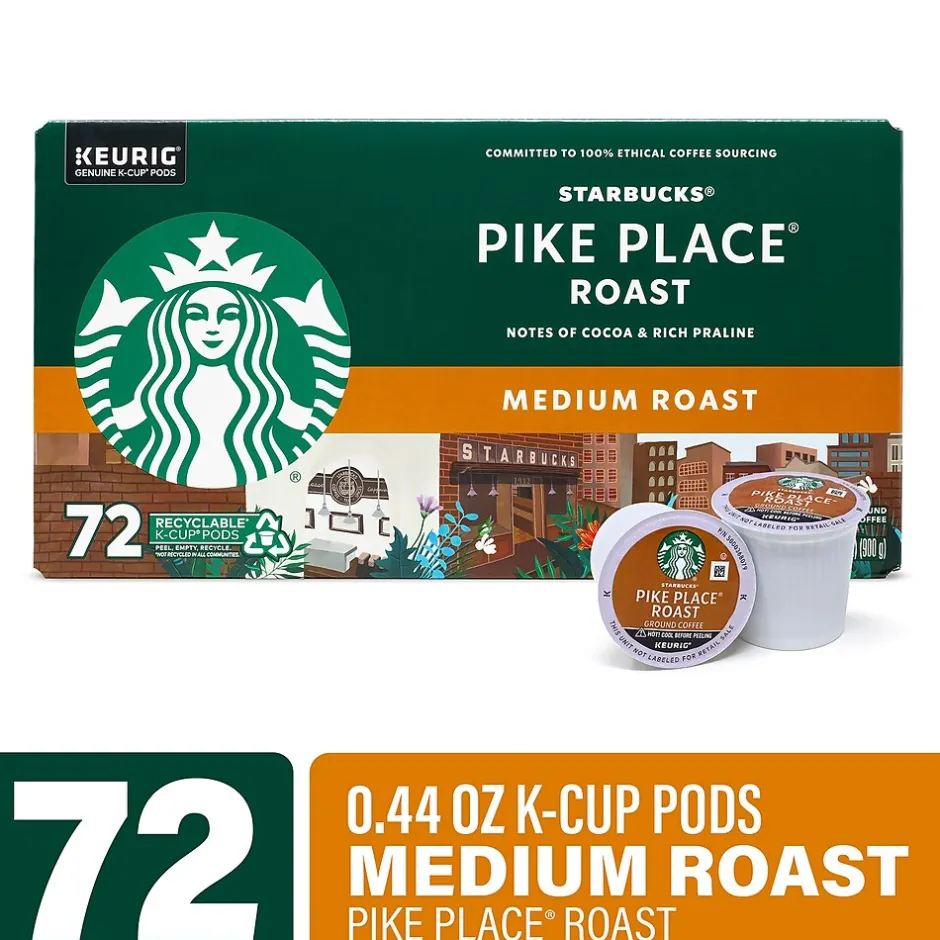 Starbucks Pike Place Roast Medium Roast K-Cup Pods, 72 ct