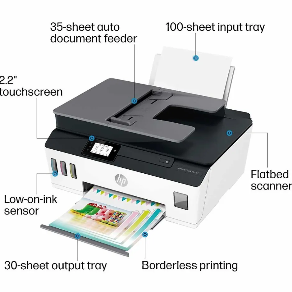 From America’s most trusted printer brand, the HP Smart Tank Plus 651 is a refillable tank printer that makes printing seamless for your home with its high capacity and wireless connectivity. Create everyday color documents at a low cost with up to 2 years of Original HP Ink included in the box.