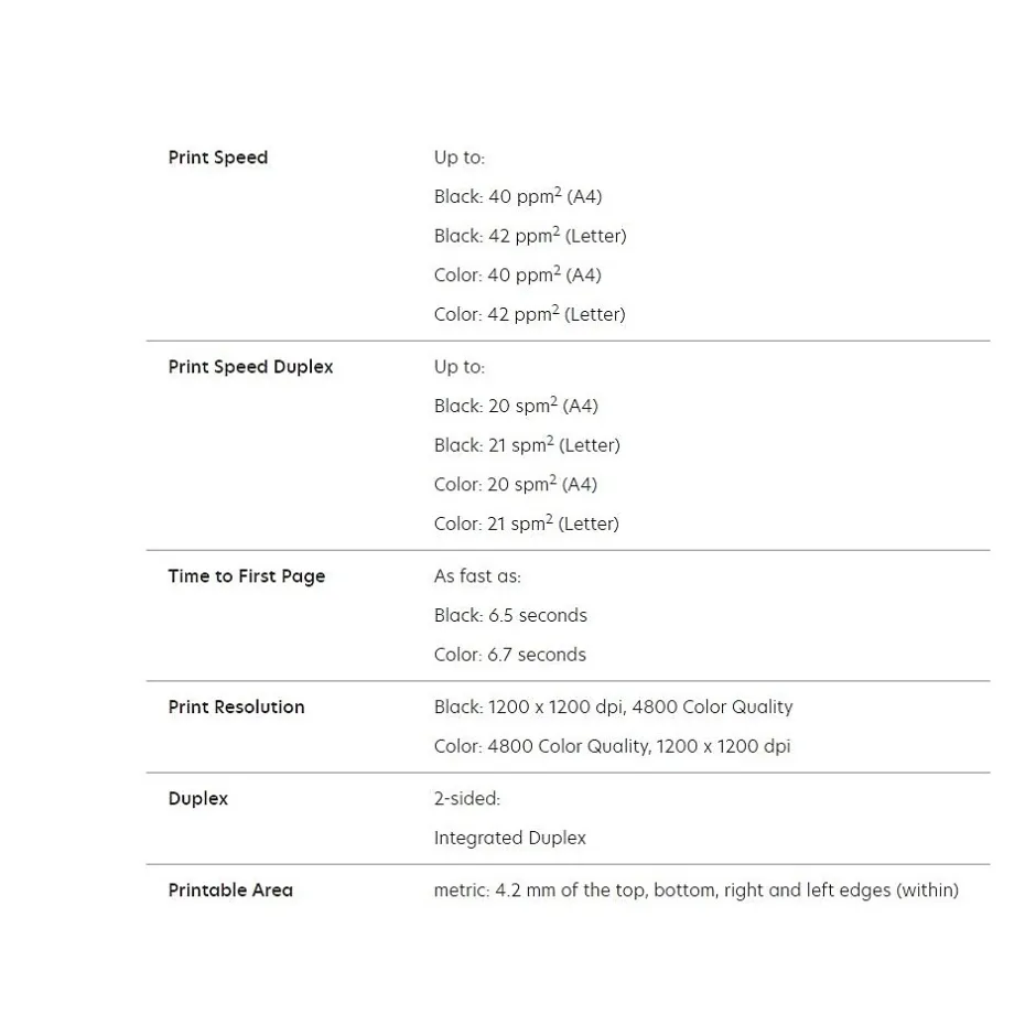 | Max Print Resolution (dpi) Double sided printing (also known as duplexing) is a feature that allows printers to print on both sides of the paper. Can either be manual, meaning the user will need to refeed the page in order to print on the other side, or automatic, where the printer will do the work for you. | Automatic |