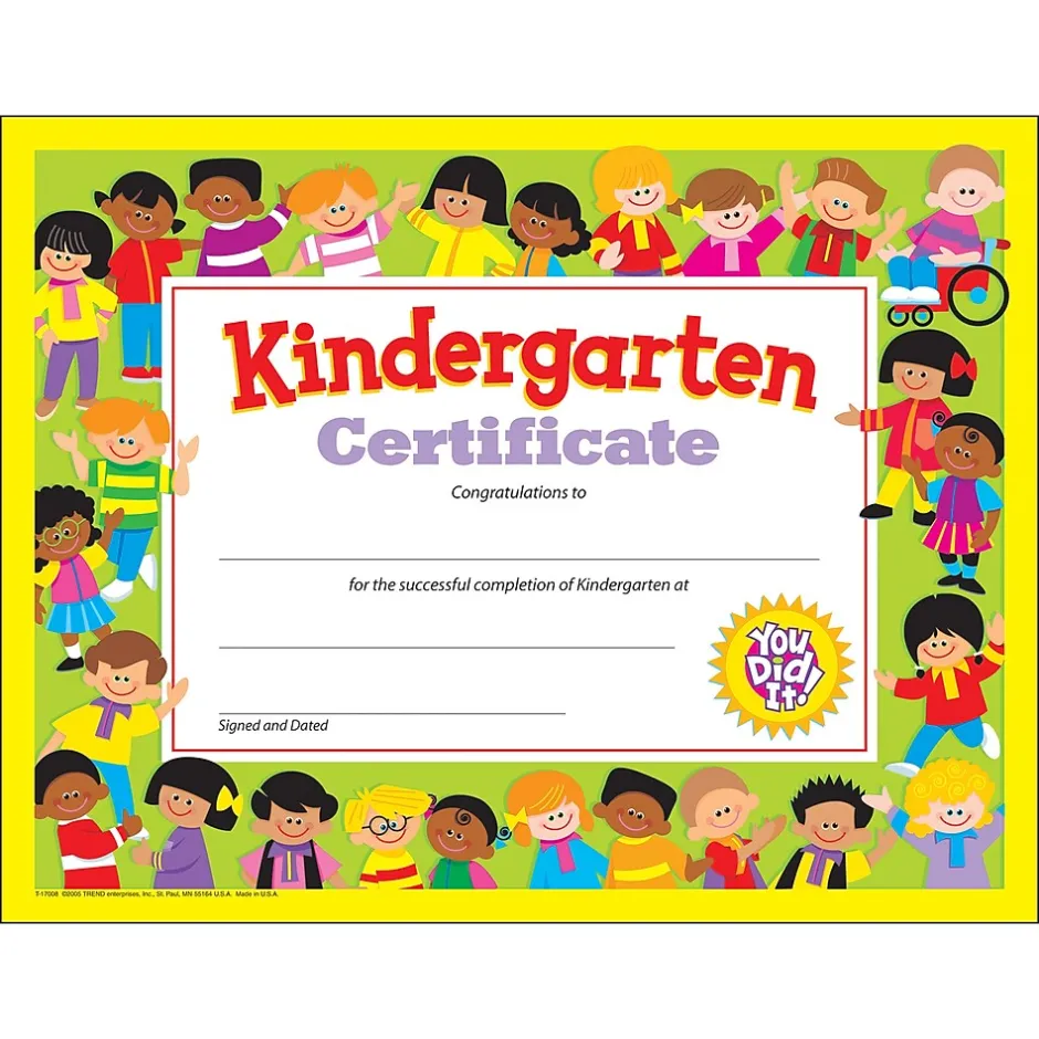 - Kindergarten Certificate, Multicolored; Use for any classroom or school award