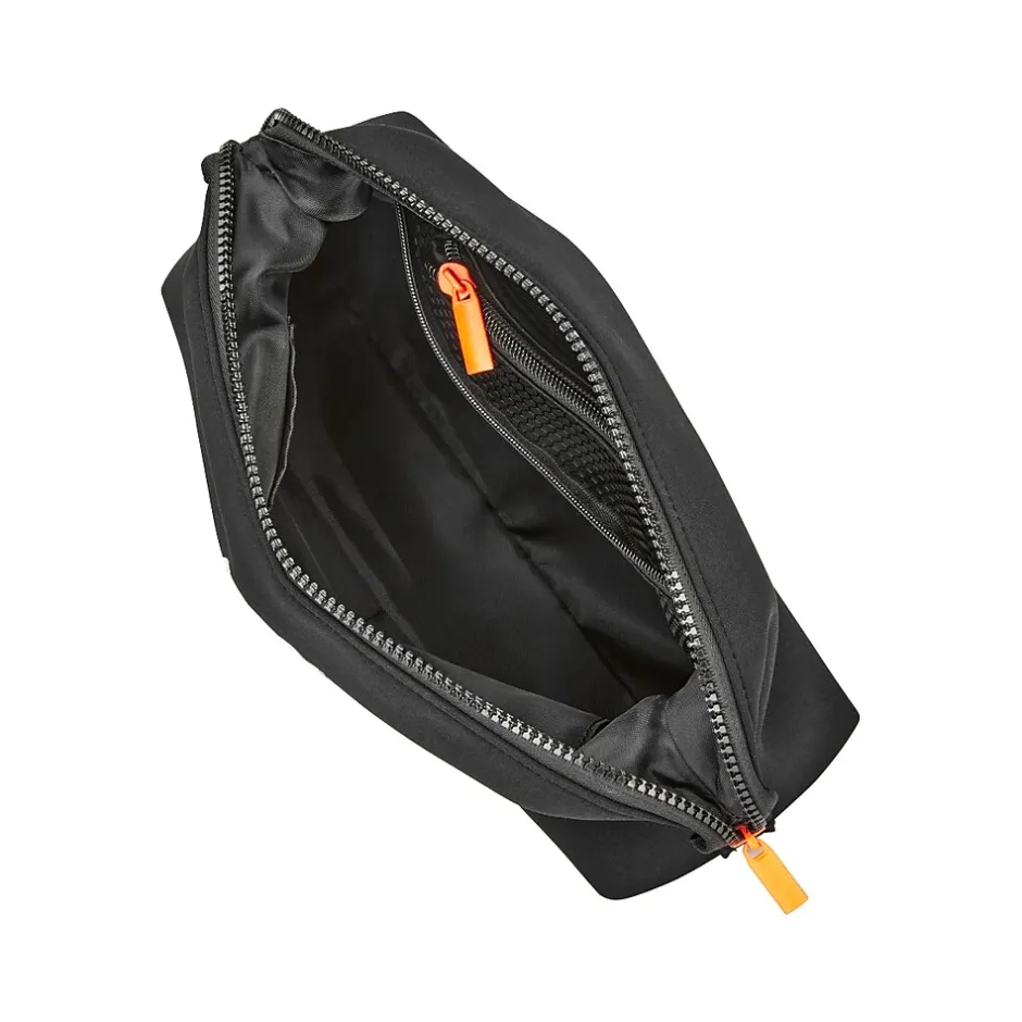 The rugged black ConairMan toiletry kit has a large organizer and small mesh pouch to keep toiletries organized and accessible.