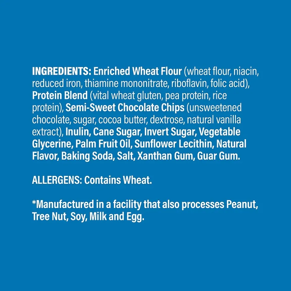 - Satisfyingly firm and chewy, our delectable Chocolate Chip vegan protein cookie is packed with plant-based protein, plenty of fiber, and zero guilt.