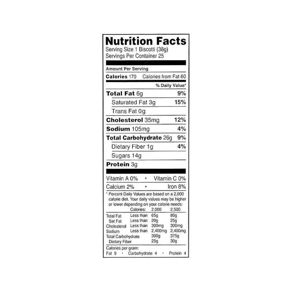 - Serving size is 1 biscotti
