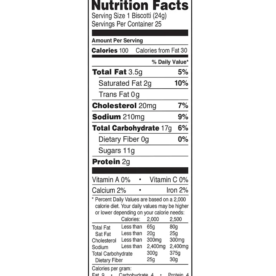 - Each biscotti has UPC and nutrition facts and is individually wrapped for freshness and convenience. Ideal for catering, vending machines, and on-the-go snacking