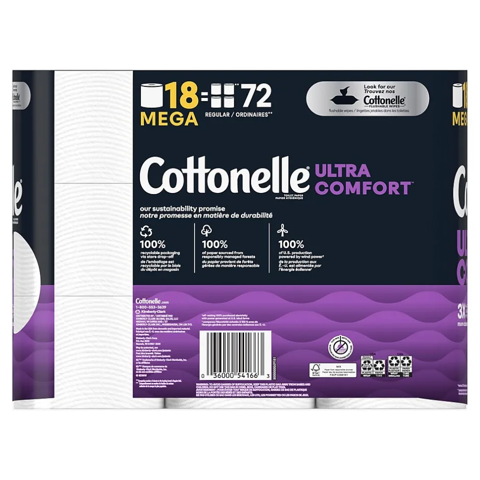 Outstandingly soft, the Cottonelle Ultra Comfort toilet paper is designed for skin comfort. This toilet paper features a unique CleaningRipples texture to help you absorb more moisture for a more comfortable clean. Made with fibers that are 100% biodegradable and safe for sewers and septic tanks, this double-layer toilet paper is also three times thicker, three times stronger, and three times more absorbent. Sourced from responsibly managed forests.