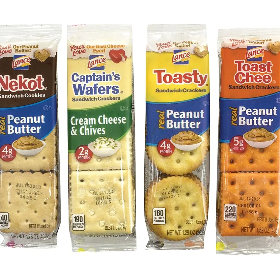 - A 36-Count box of Lance Sandwich Crackers in a variety of 4 different cracker flavor