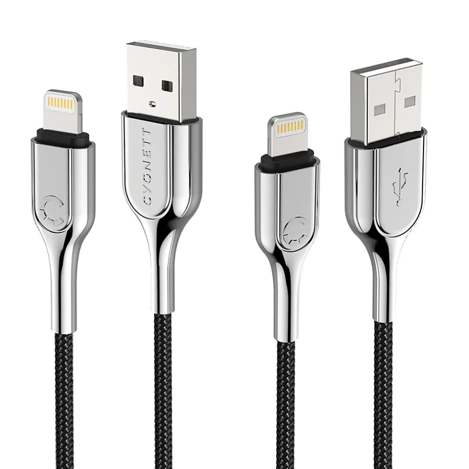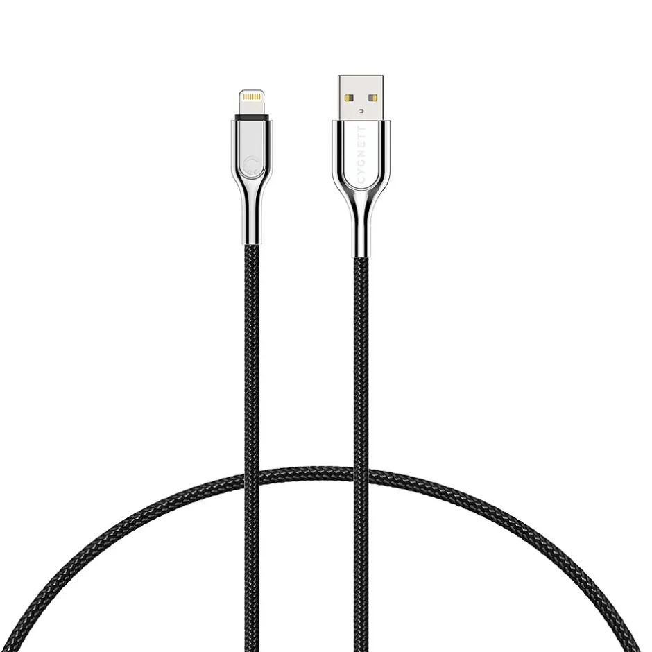 This 3.28 ft. Cygnett premium Armored Lightning to USB-A Charge and Sync Cable is officially verified to work with your iPhone, iPad, and iPod devices as well as other Apple Lightning devices! Charge and sync all your Lightning-connector devices quickly and safely with its 2.4 amp/12 watts of fast charging capability. Simply plug the USB end directly into any USB port to stay connected while you’re at home, at work, or on the road. Made from a double-braided nylon exterior, an aramid fiber core, and stainless steel housing, this Black cable is durable and robust. Double braiding allows the cable to resist abrasion while maintaining flexibility for ease of use. The cable connectors forged from a metallic alloy provide a refined aesthetic and superior scratch resistance.