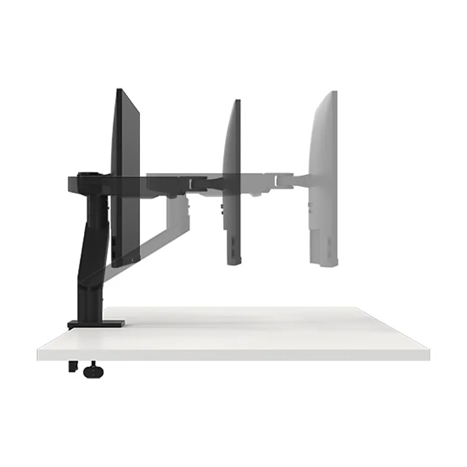 - Dual monitor arm is built to minimize wasted space behind the arms so that you get plenty of usable area