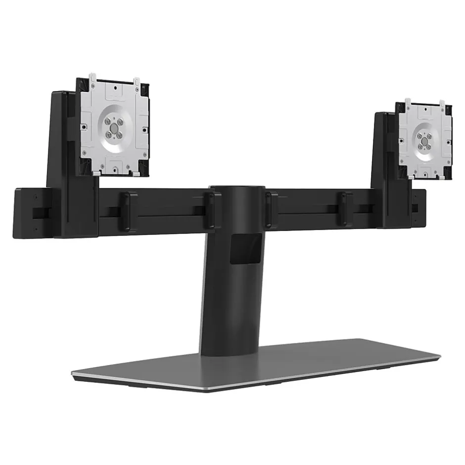 Space saving, the Dell Dual Monitor Stand – MDS19 mounts up to two 27-inch monitors, providing the screen real estate you need to be most productive. The dual monitor stand frees up the workspace in front of you for writing and referencing. The round cable management slot neatly channels cables within its stand, routing them along the curved bar with cable clips keeping the cables intact and hidden from view. Each monitor panel is fully adjustable, allowing you to set the height, tilt, pivot, and swivel to suit your viewing comfort. The stand’s tool-free installation feature makes it easy to securely snap Dell UltraSharp and P-series monitors with Quick Release into place without the need for screws. It also supports Dell E-series monitors and other 19″ to 27″ 100 mm x 100 mm standard VESA compatible monitors.