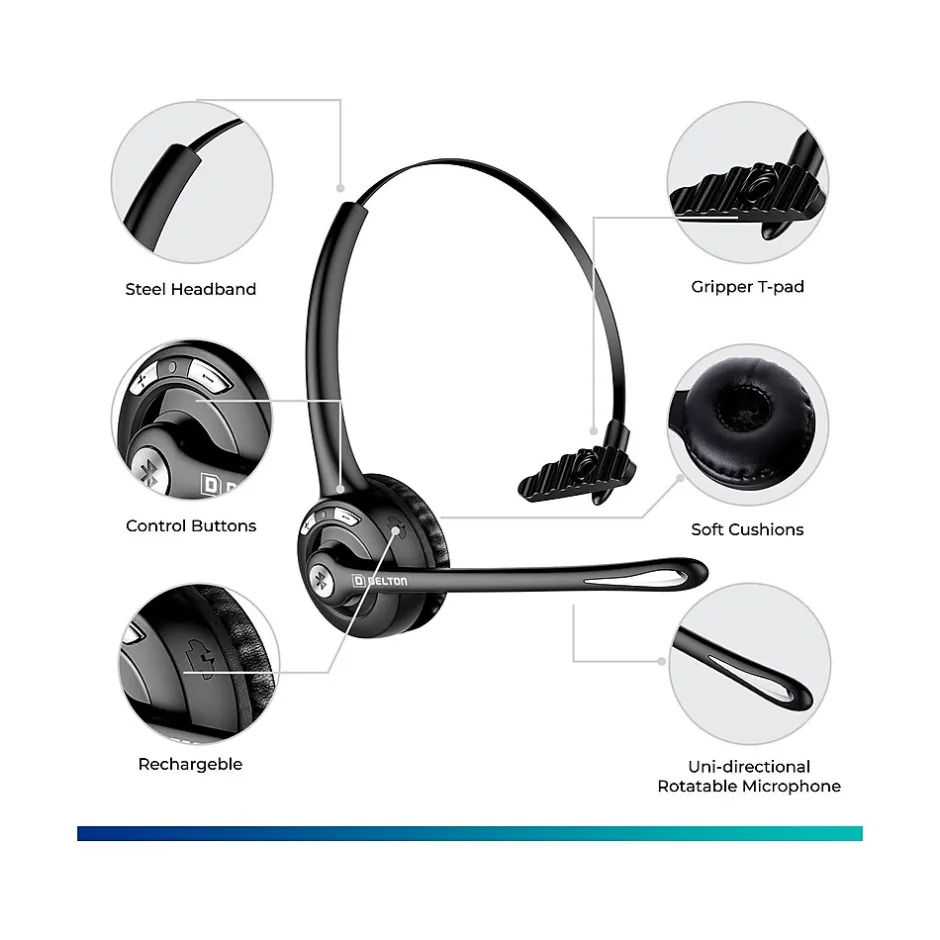 Delton 10X Wireless Noise-Canceling Bluetooth Over-the-Head Mono Computer Headset, Black (DBTHEAD10XBTDL)* Headsets