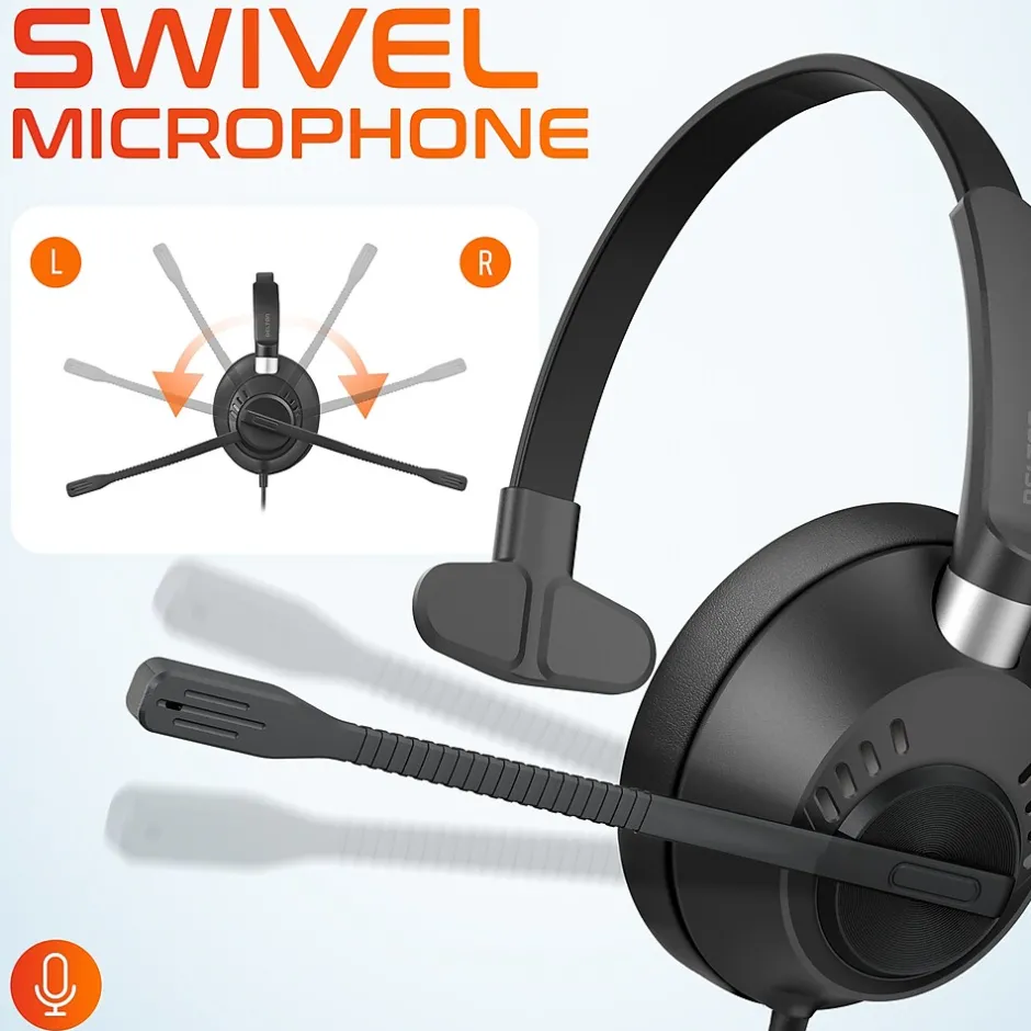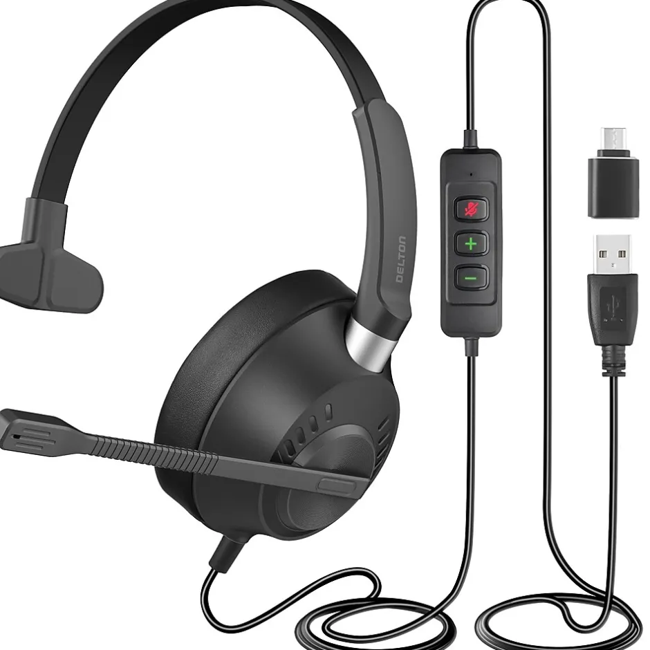 Immerse yourself in crystal clear communication and vibrant sound with the Delton 40Y wired headset. Featuring environmental noise cancellation technology (ENC), background noise is effectively reduced, ensuring clear conversations. With its high-quality built-in microphone, your voice is projected loud and clear, perfect for calls and virtual meetings. The flexible and adjustable microphone captures sound from all directions, optimizing voice pickup for seamless communication. Control your audio effortlessly with intuitive in-line mic mute, volume adjustment, and call handling controls. With its plush ear cushion and adjustable headband, this single-ear headset provides maximum comfort for extended listening sessions. Compatible with a wide range of devices and operating systems, including computers, laptops, tablets, and smartphones, the Delton 40Y PC headset with microphone offers versatility for professional and personal use.