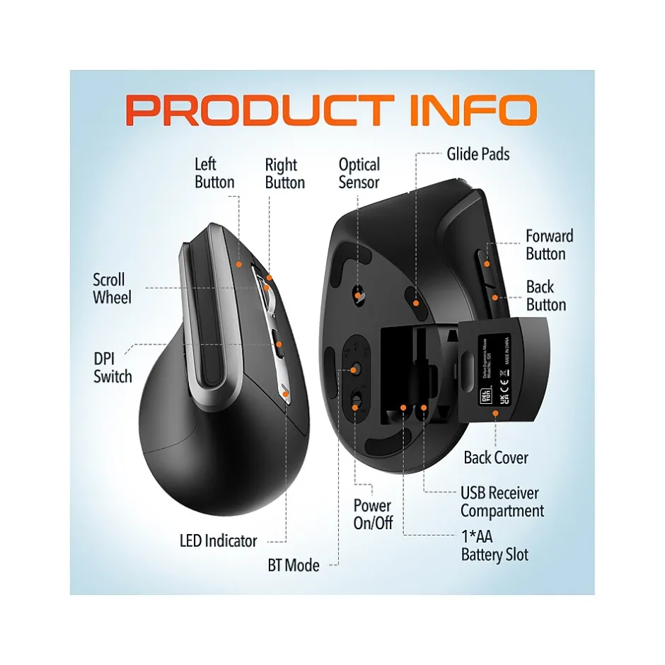 - Vertical mouse features a responsive five-button layout for precise control, making it suitable for various tasks