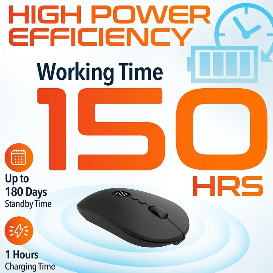 - Powered by a built-in battery, the wireless mouse with dongle provides up to 150 hours of continuous usage and an impressive 180 days standby time, ensuring long-lasting performance.