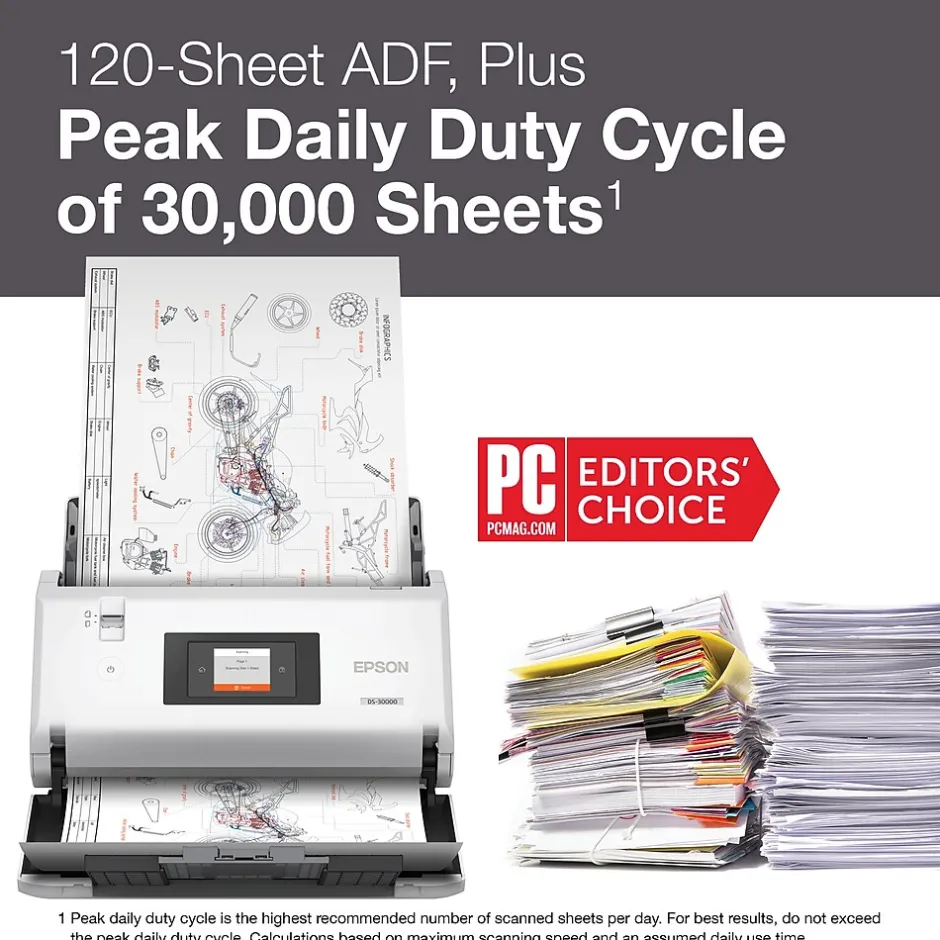 - Built for busy offices — 120-sheet Auto Document Feeder; plus, peak daily duty cycle of 30,000 sheets