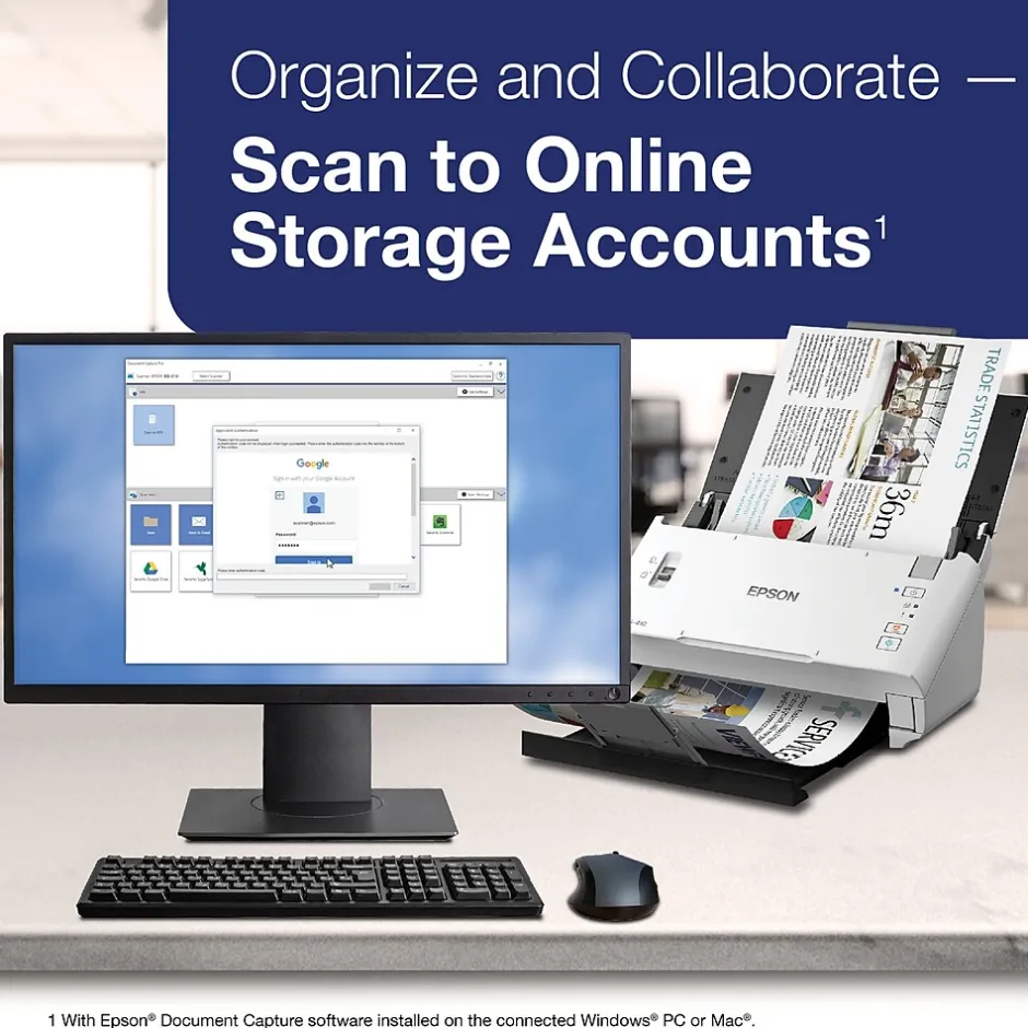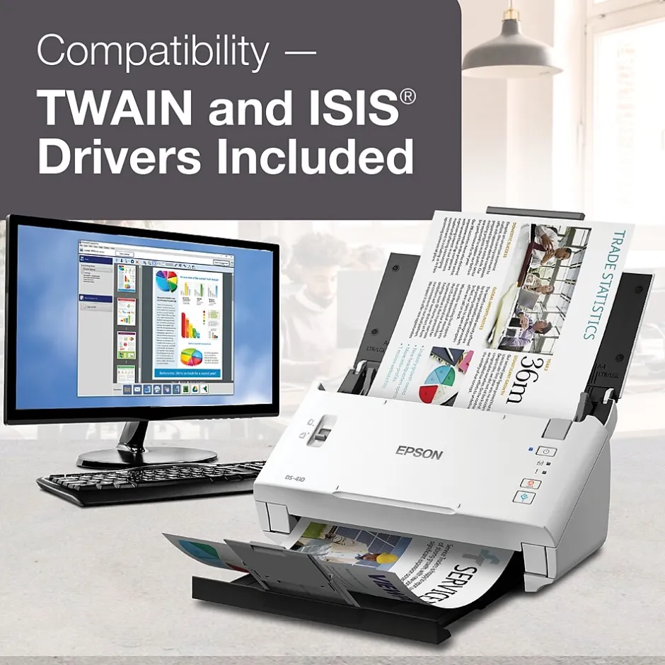 Archive important documents into digital formats with this optical document scanner. It provides fast, effortless scanning via its 26-ppm speed and 50-page automatic document feeder. Featuring ISIS and TWAIN drivers, it works seamlessly with most document management software to enhance productivity. This Epson document scanner stores directly to online storage accounts and includes an OCR software for editing scanned documents and spreadsheets.