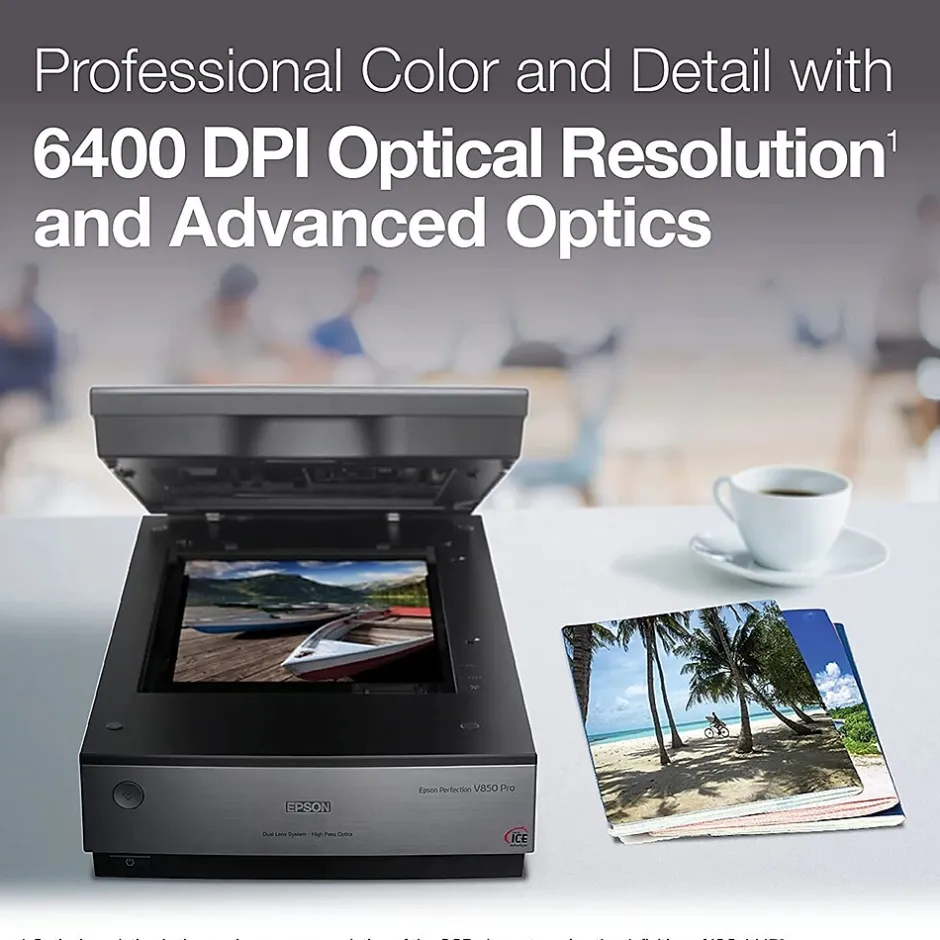 Work with this scanner immediately without warm up, improving productivity. It lets you batch scan slides, negatives, and film to save time. This Epson Perfection Pro scanner’s Dual Lens System selects the best lens for optimal results based on the media, reducing the need for retouching.
