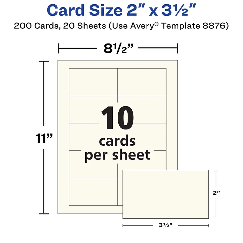 - Item includes 20 printable sheets with a total of 200 blank 2″ x 3.5″ cards