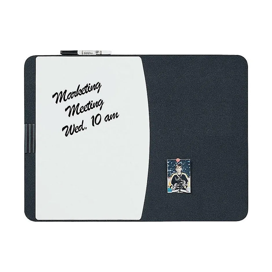 Stay organized and share ideas with this 35 x 23.5-inch combination board, which is designed to fit into your cubicle. The whiteboard and black foam surface board offers double functionality. Mount the whiteboard easily to cubicle fabric-covered walls or standard walls.