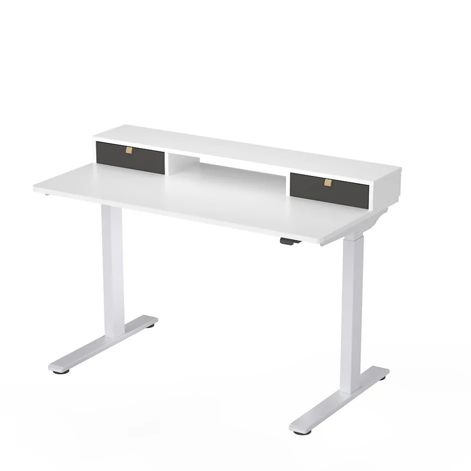 - A separate shelf with 2 fabric drawers are included. The shelf/drawer system rests on the top and does not get permanently installed to the desktop