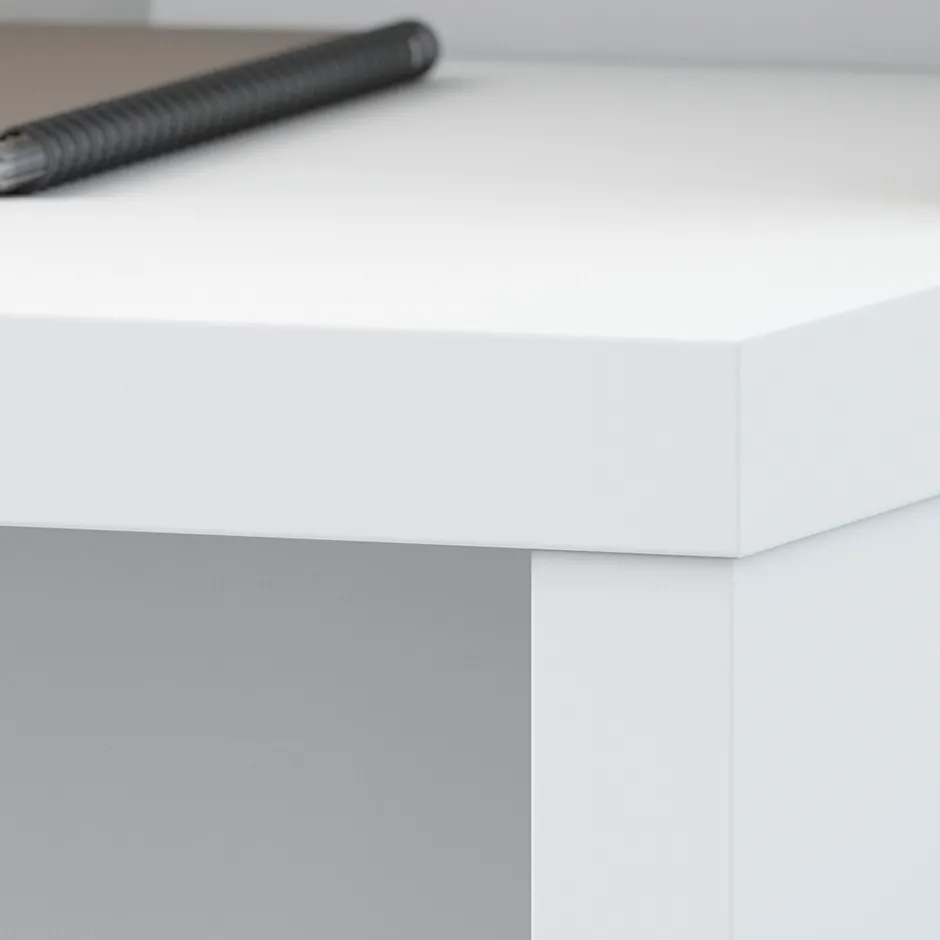 The Bush Business Furniture Echo L Shaped Bow Front Desk creates a strong presence perfect for those whose passion for business is only matched by their fashionable tastes. Blending a Pure White finish with appealing wide lines, the contemporary Desk inspires and gives a residential feel to the modern workspace. Thick and durable, a thermally fused laminate finish endures years of everyday use to maintain the elegance of the white Desk. Spread out on the spacious L Shaped surface with your computer, paperwork or any other tasks of the day. The Bow Front design impresses while encouraging placement in the middle of an office or room. Attach the 36 inch Return to either side of the Desk to form a left or right-handed layout. From Bush Business Furniture, Echo comes with a 3 Year Warranty and meets ANSI/BIFMA standards.