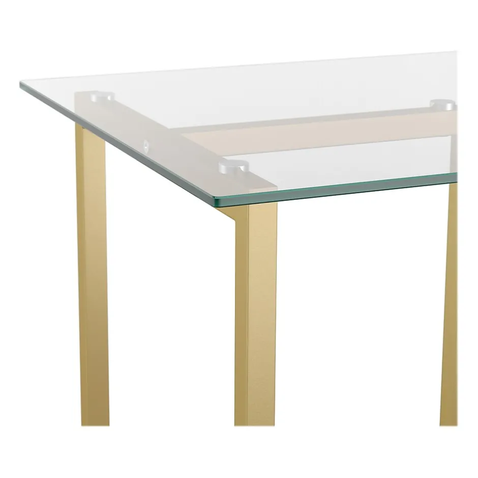 - Comes in modern style, featuring a 0.31″ clear tempered glass desktop and powder-coated steel frame in a polished brass finish