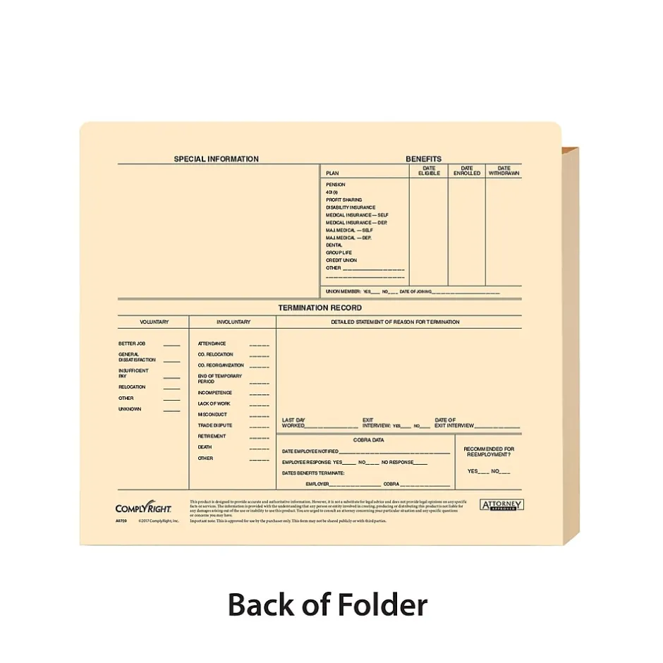 - Outside grid lets you record general employee information and benefits data directly on the folder