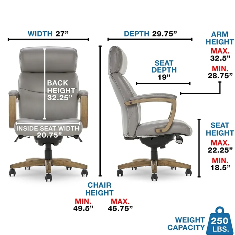 Keeping your home modern but cozy is not always an easy task, but somehow the La-Z-Boy Greyson executive chair makes it simple. Don’t take the word “executive” too literally here: while the Greyson chair works perfectly nestled up to an office desk, it’s equally at home in a more laid-back setting for gaming, entertaining, and reading. Mixing sleek bonded leather with solid wood accents, much like famed designers Eames did in the 50s, this contemporary chair offers stunning eye appeal that’s worth a second look. Ergonomic and adjustable, this La-Z-Boy office chair allows you to control the height and tilt to suit your sit positioning and give you an optimized body alignment. La-Z-Boy office chairs are designed to put your comfort first with quality that’s built to last, so your work day is always engaged and productive.