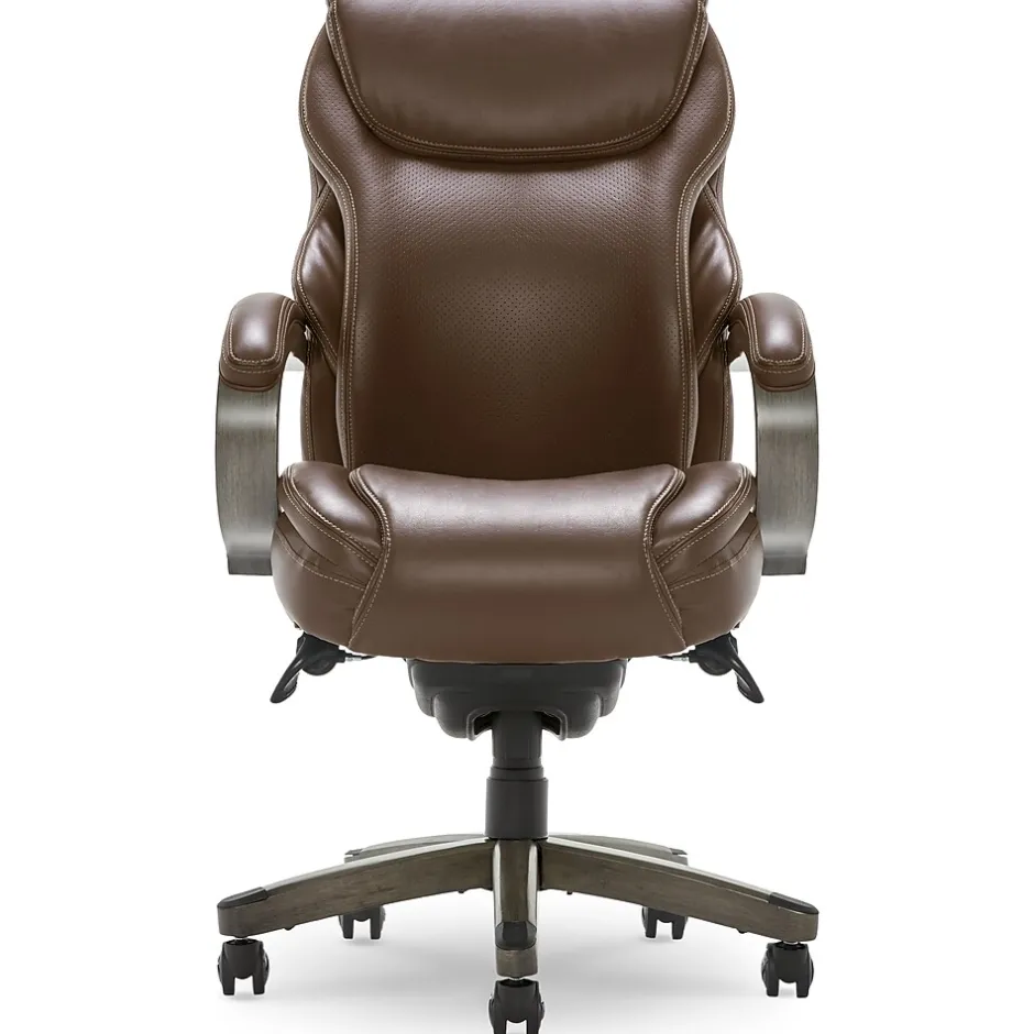 With high-end soft bonded leather upholstery and elegant wood detailing, the La-Z-Boy Hyland executive office chair with AIR technology is a statement chair for any traditional office space. The flexible AIR lumbar system pivots to provide back support whenever you shift. The adjustable height, recline, and layered memory foam cushions will keep you cradled in comfort all day. The La-Z-Boy Hyland executive office chair is a luxurious addition to any workspace.