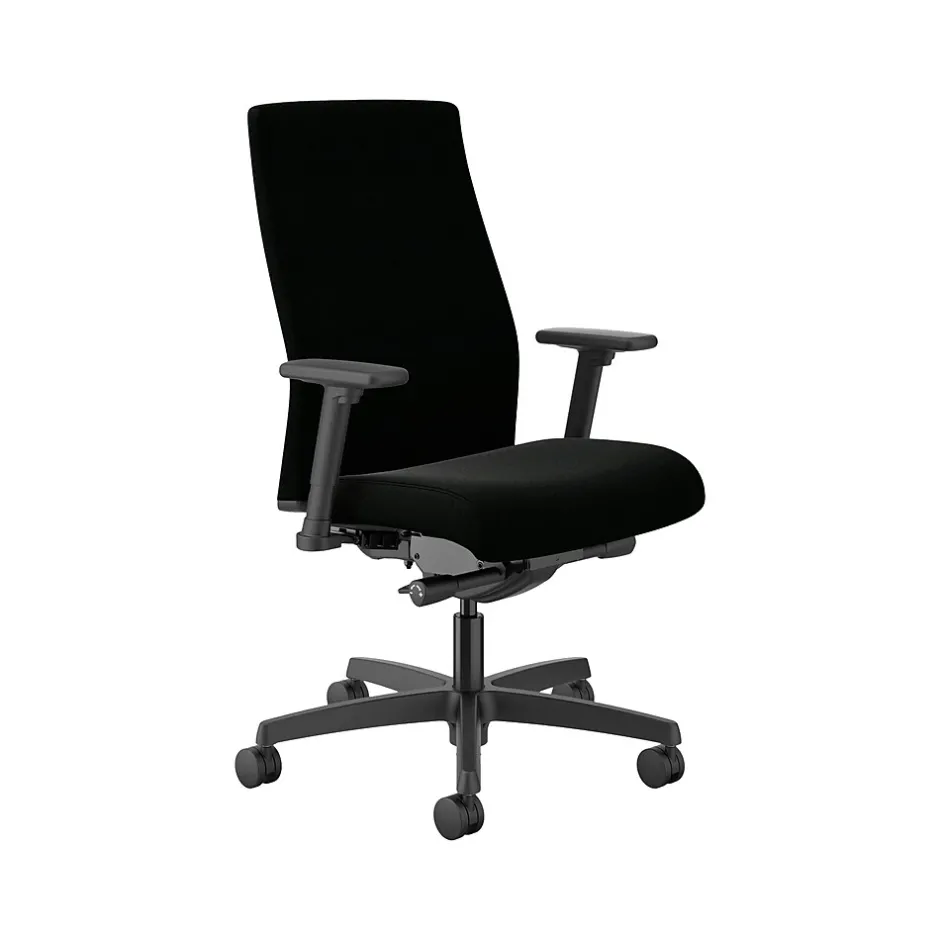 Taking care of business has never been easier or more pleasurable than when you’re sitting in this HON Ignition 2.0 mid-back upholstered back task chair. The advanced synchro-tilt control recline mechanism and the upholstered back and seat provide the sleek look and comfortable support you need. Height- and width-adjustable arms move right to that sweet spot to provide padded comfort and upper body support, and the standard five-star base moves effortlessly on any surface. The chair can be easily assembled in minutes without the use of special tools. When you’re ready to take the next step up in task seating, look no further.