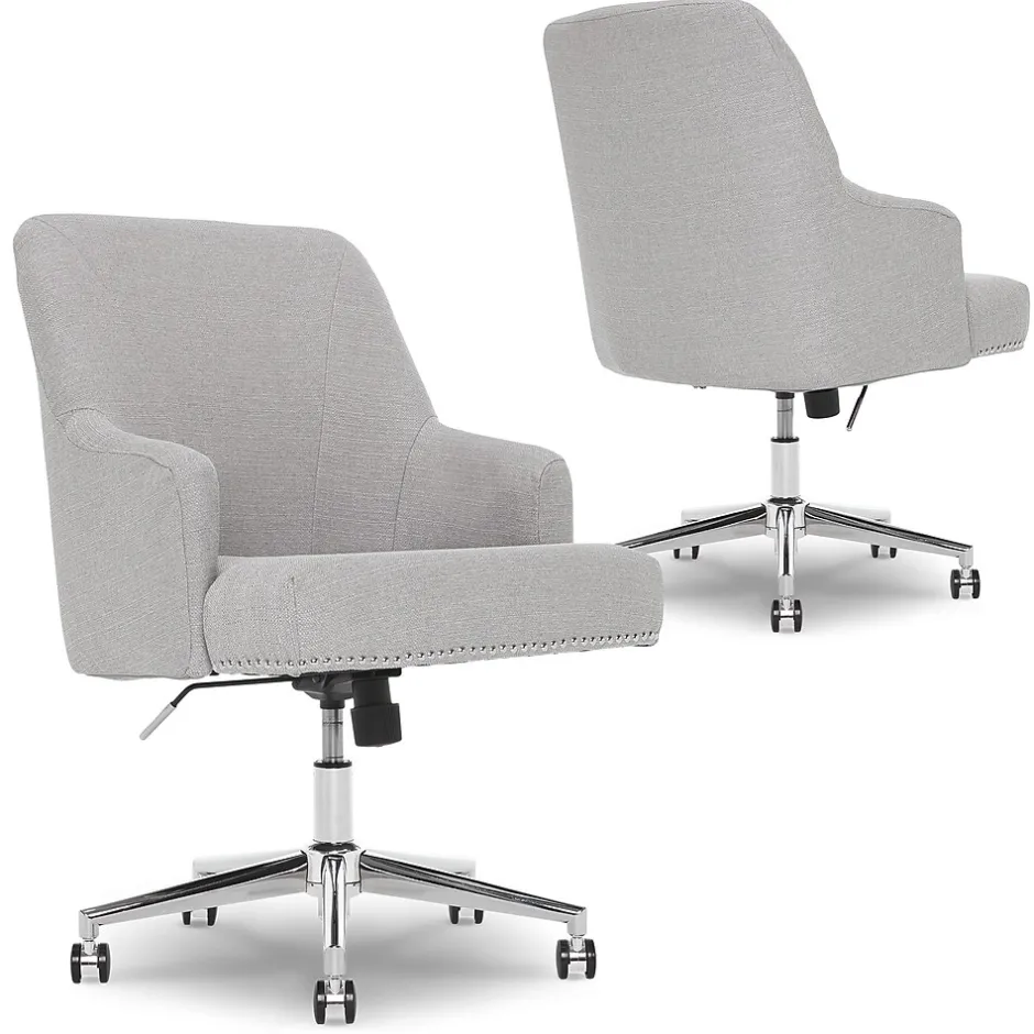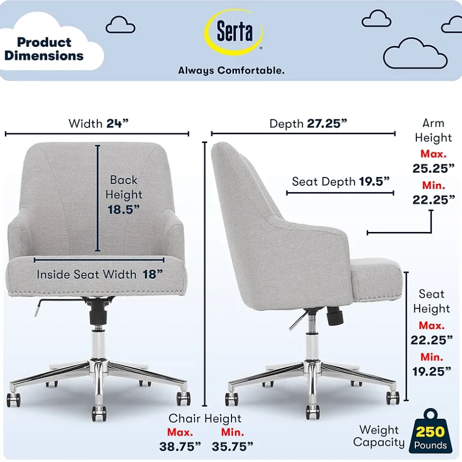 Add a touch of modern elegance to your space with a design that is equally functional and stylish. This expertly-wrapped, neutral design is height-adjustable to tailor your professional space. The chrome-finished, stainless-steel stand offers you 360-degree swivel and casters for easy mobility. The memory foam seat and arms with pocket coils feature renowned Serta comfort, perfect for home or office use.