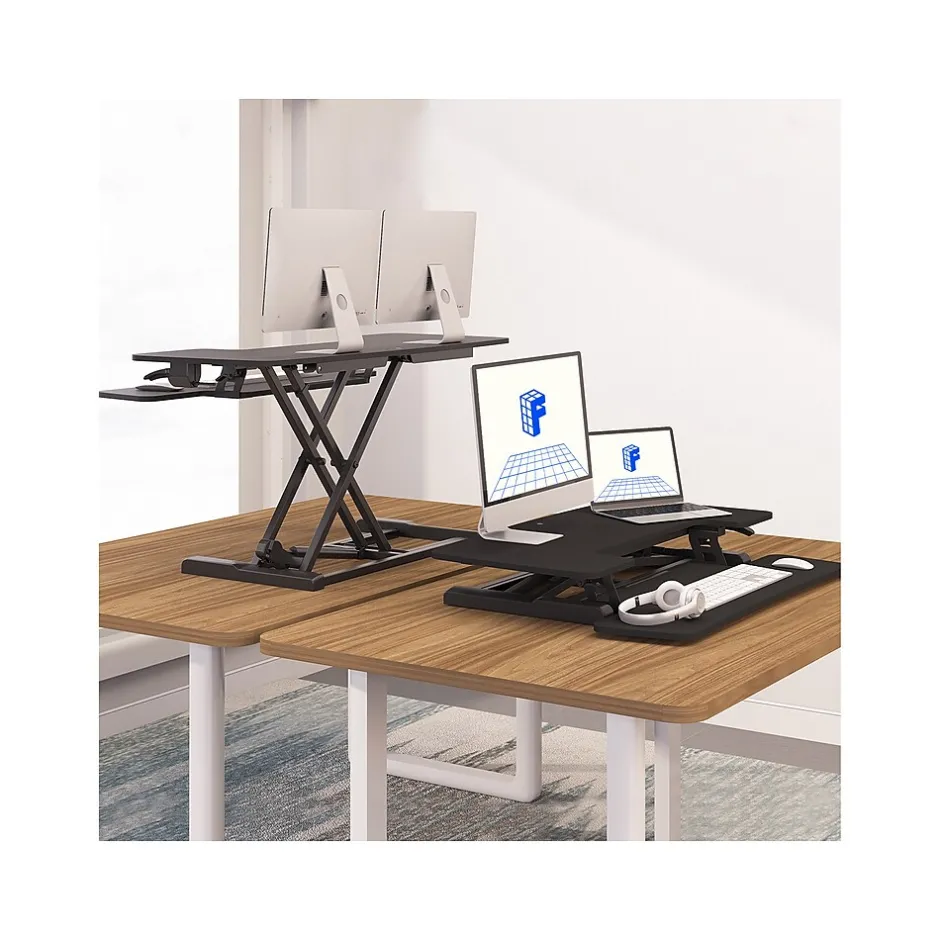 - Standing desk converter provides an easy way to transition between sitting and standing throughout the workday