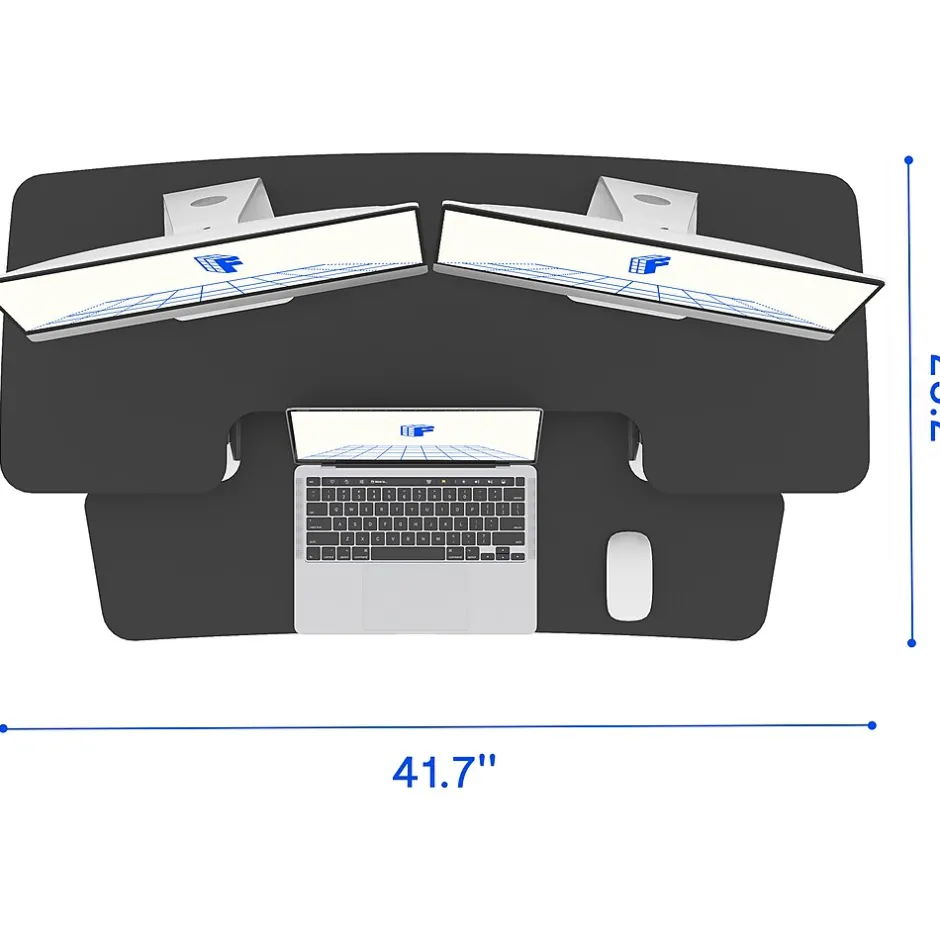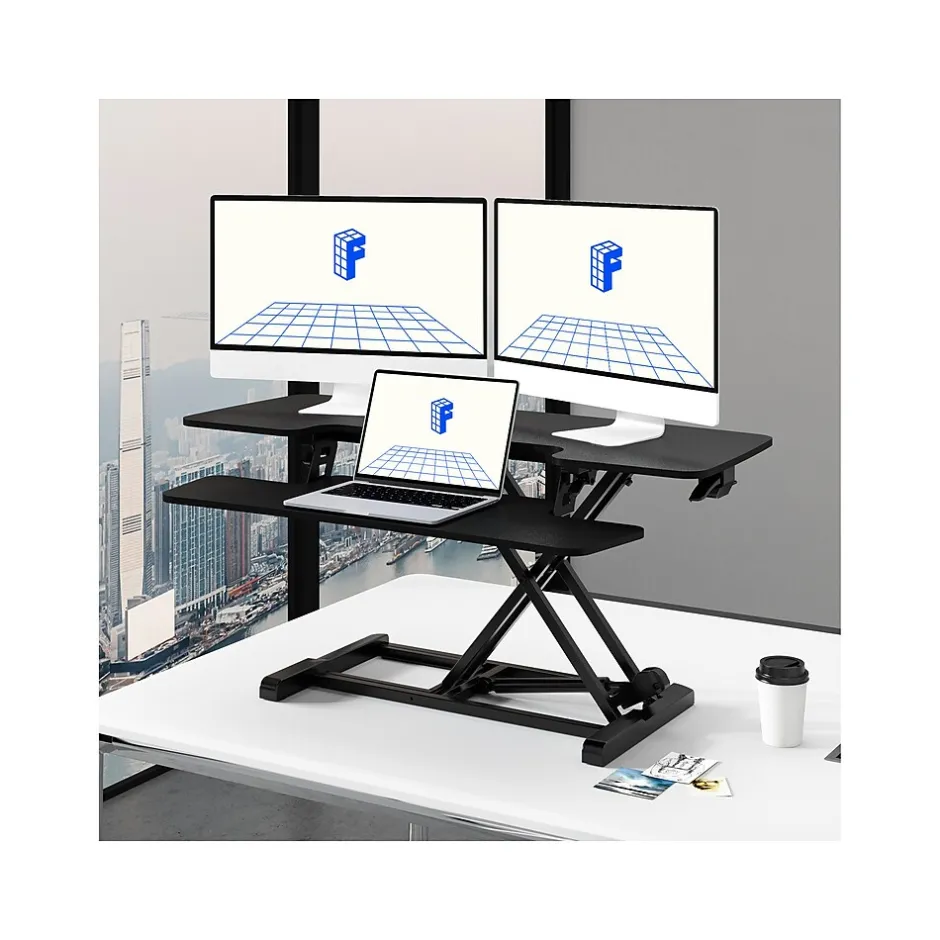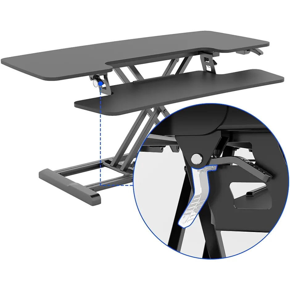 - Desk converter with adjustable height designed to give you the option to sit or stand in seconds
