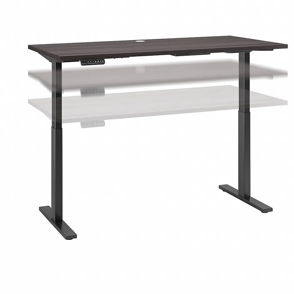 Have a healthy and productive day at the office with the Move 60 by Bush Business Furniture 60W x 30D Height Adjustable Standing Desk. Those who use sit to stand desks report improved attitudes, energy and comfort while getting more done, and the Move 60 provides an affordable solution. The electric adjustable height Desk smoothly lifts from a low of 27 inches to a high of 46.7 at the push of a button. Store your favorite heights with four programmable presets. The ergonomic Desk withstands years of everyday use. A durable thermally fused laminate finish resists scratches and stains, while the sturdy steel base creates a weight capacity of up to 200 pounds. This sit to stand Desk will have no problem holding all of your work materials. Backed by a 5 Year Warranty, the Height Adjustable Standing Desk meets ANSI/BIFMA quality test standards.
