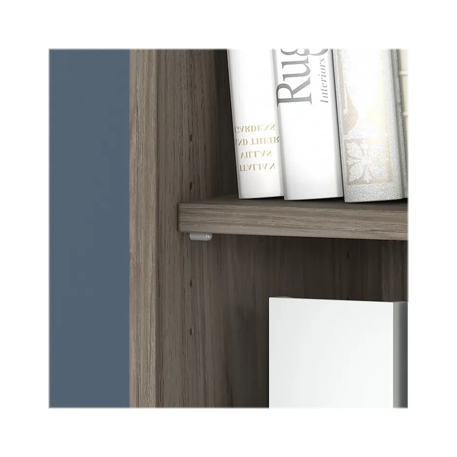 - Thermally fused laminate finish fends off scratches and stains to protect the five-tier bookcase with doors
