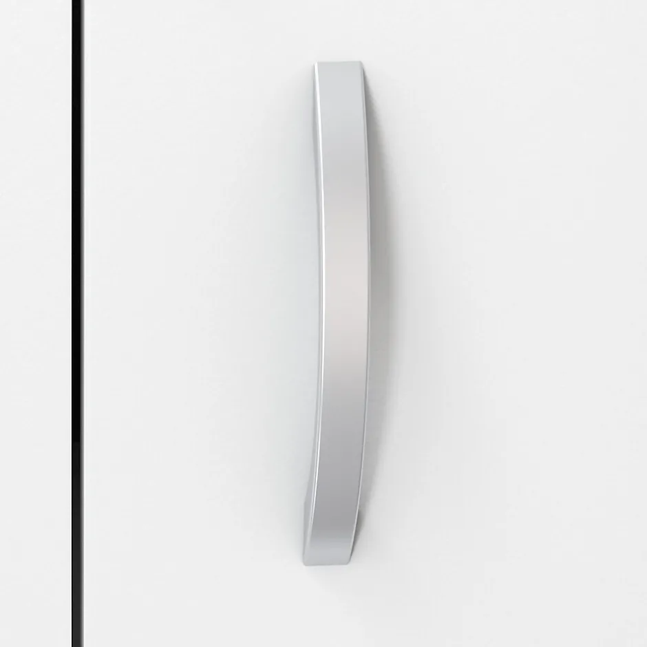 - Brushed Nickel hardware complements the White or Storm Gray finish to complete the contemporary look