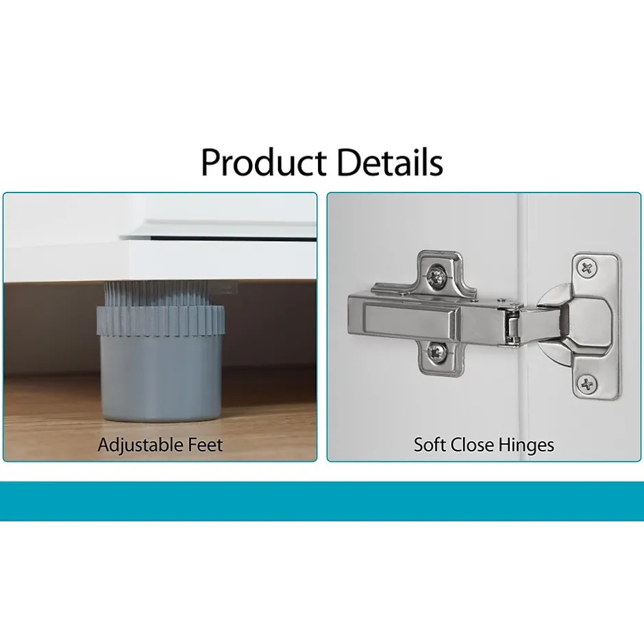 - Height adjustable feet allow leveling on any floor and keep cabinets away from standing water
