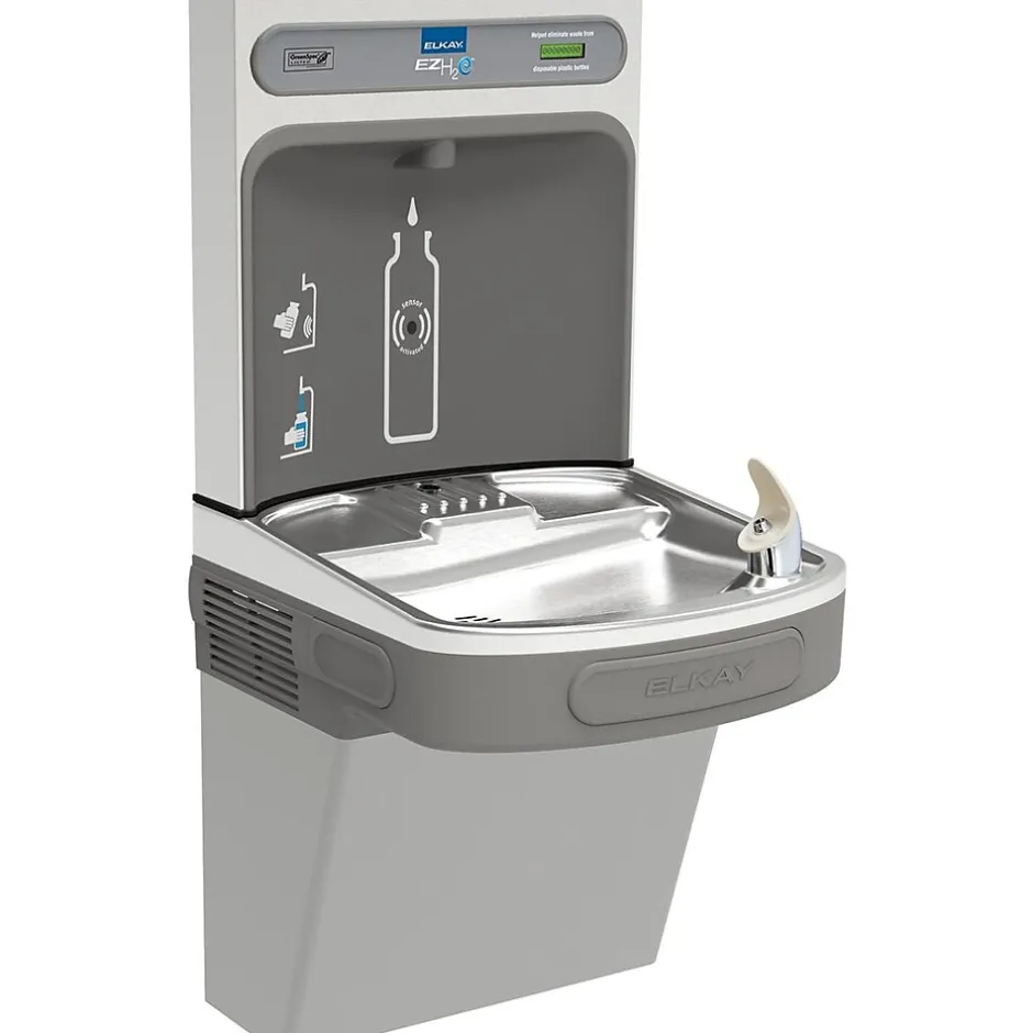 The Elkay EZH2O® Bottle Filling Station delivers a clean quick water bottle fill and enhances sustainability by minimizing our dependency on disposable plastic bottles. Complete cooler and bottle filling station in a consolidated space saving ADA compliant design. Bottle Filler features sanitary no-touch sensor activation with automatic 20-second shut-off timer.