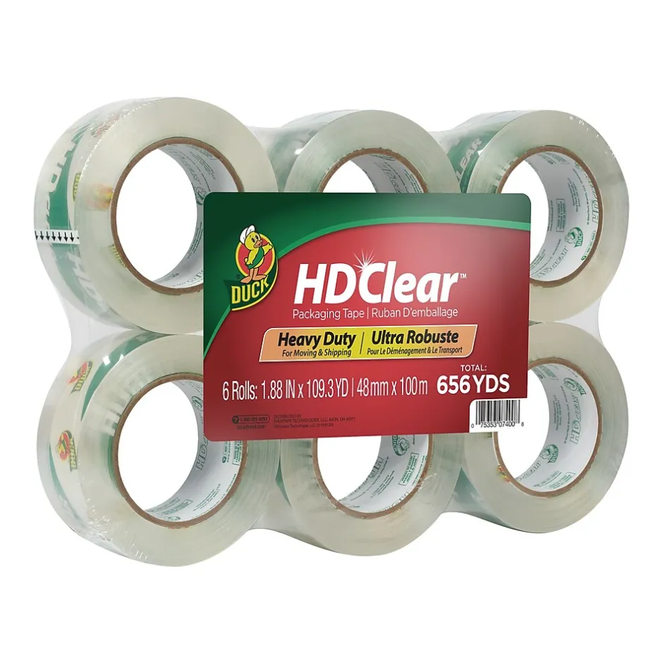 When it’s time to pack up, be sure to choose a durable tape that’s tear and break resistant. Duck Brand® HD Clear™ Heavy Duty Packing Tape is designed with a long lasting adhesive that keeps your boxes and packages secure during shipping, moving and storage. Plus, it rolls on corrugate completely clear for a professional look in any application. It’s ideal for use on medium weight boxes and sticks well in hot or cold temperatures.