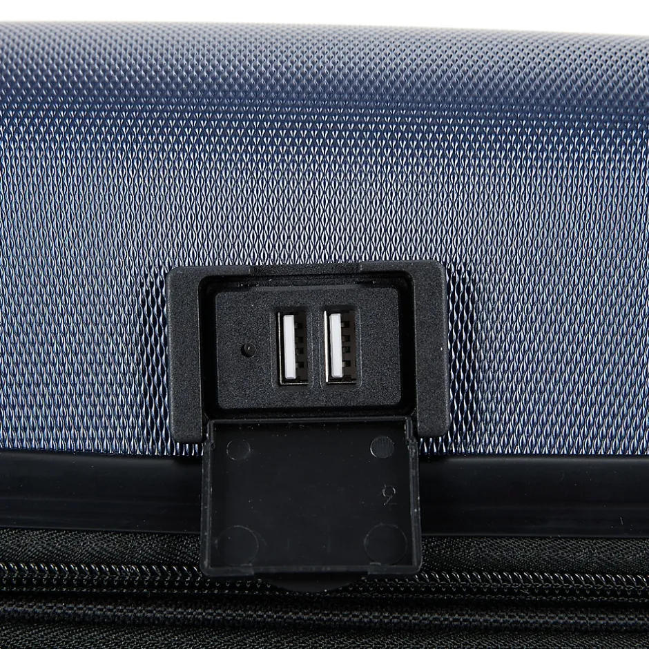 - Integrated USB port on the carry-on provides access to power on the go (portable power bank not included)