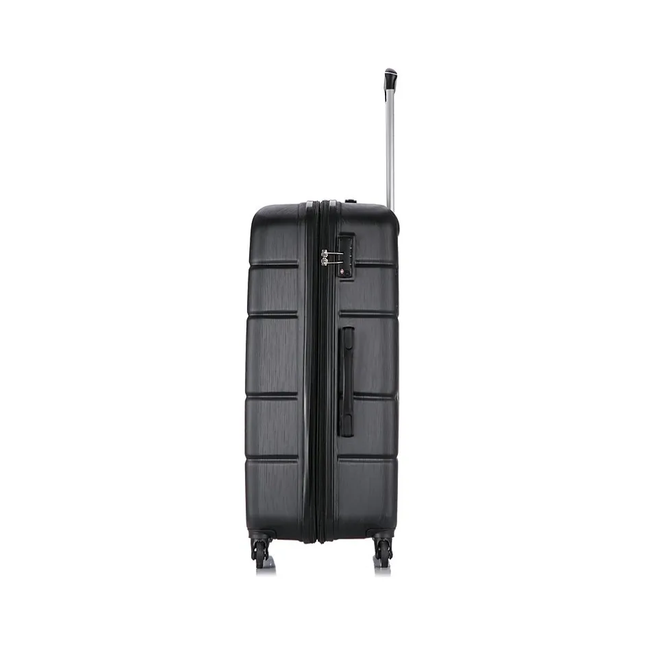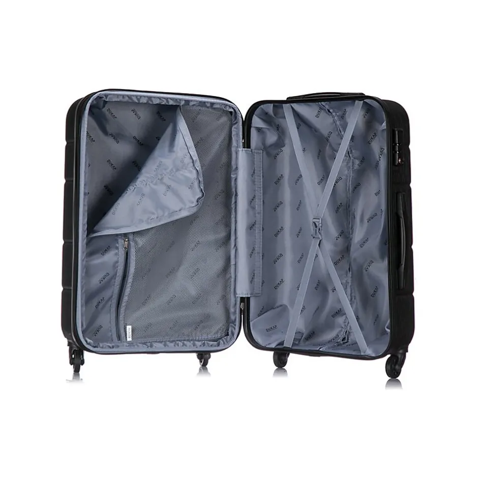 The hard-flex construction of this DUKAP RODEZ luggage set offers maximum strength, durability, and a water-/scratch-resistant finish. It features a full interior fabric lining with a zipper compartment on one side and snap-on straps on the opposite side for easy packing, plus one inside pocket for your convenience.